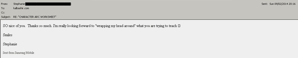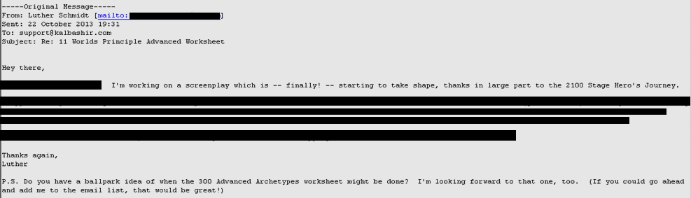 ...I honestly think that I would never have written a screenplay without your help.. .Stephen Midlane